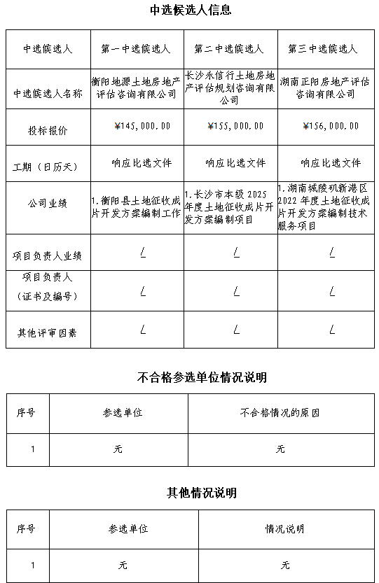 衡陽市雁城東路(東方里街-東二環(huán))及雁城東路與建湘連接線新建工程土地征收成片開發(fā)方案編制服務比選中選候選人公示