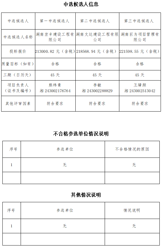 永州分公司涉水檢驗(yàn)設(shè)施建設(shè)工程公開比選中選候選人公示