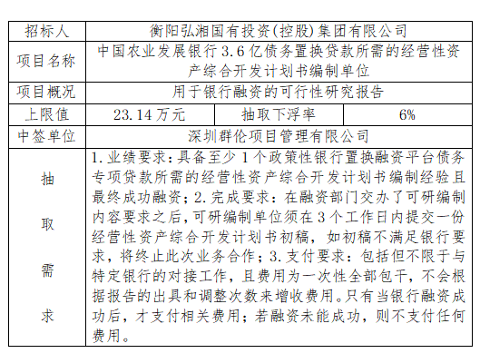 招 標(biāo) 人:衡陽(yáng)弘湘國(guó)有投資(控股)集團(tuán)有限公司